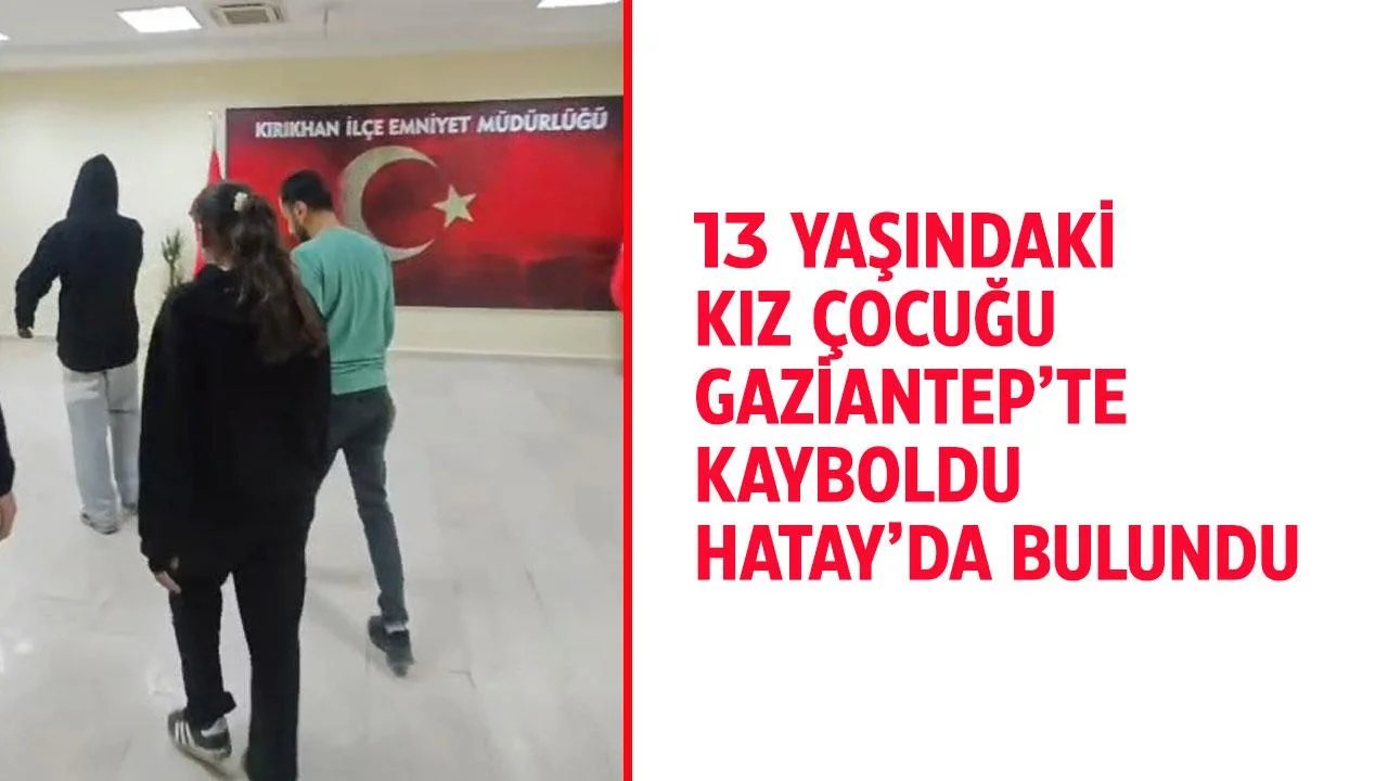 Gaziantep'in ailesinin kayıp başvurusunda bulunduğu Eye A. (13), A.Ç. isimli çocukla beraber Hatay'da bulundu.