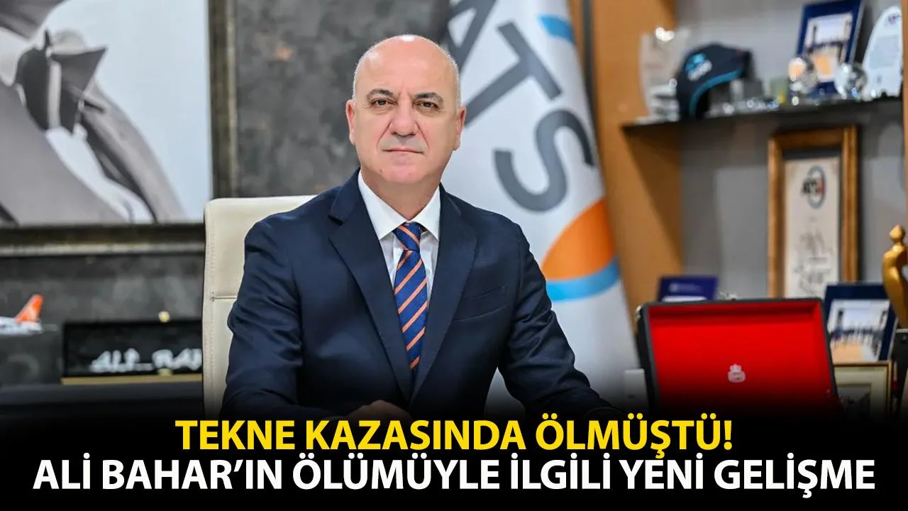 ATSO Başkanı Ali Bahar, 18 Temmuz 2024 akşamı beraberinde M.S.Ç. ve Y.C.Ç. ile birlikte kendisine ait 'Alber' adlı tekneyle Kemer Marina'dan denize açıldı. Geceyi denizde geçiren 3 kişi, sabah marinaya dönmek üzere hareket etti. İddiaya göre Ali Bahar, marinaya yanaştıkları sırada teknede oturmak için kullanılan bir minderin denize düşmesi üzerine suya atladı. Tekneyi kullanan arkadaşı M.S.Ç. durumu fark etmeden manevra yapınca motor pervaneleri arasında kalan Ali Bahar, yaşamını yitirdi. Kemer Cumhuriyet Başsavcılığı, Ali Bahar'ın ölümüne ilişkin iddianame hazırladı. Ali Bahar'ın vücudunda 2.55 promil alkol ve anestezik ilaç lidokain maddesi bulunduğu kaydedilen iddianamede, M.S.Ç. ve Y.C.Ç. hakkında 'Taksirle ölüme neden olma' suçlamasıyla 2 yıldan 6'şar yıla kadar hapis talep edildi.