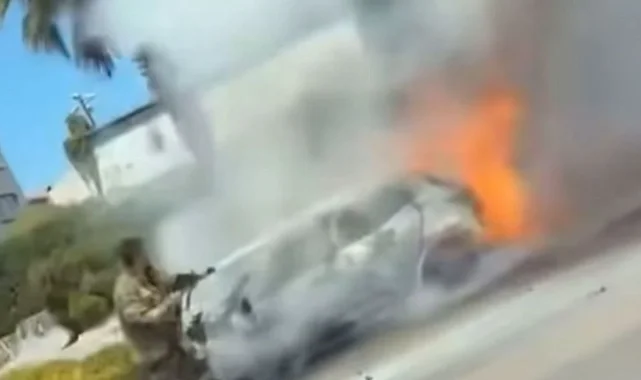 Aracın alev aldığını gören vatandaşlar araçlarındaki yangın söndürme tüpleriyle yangına müdahale etmeye çalıştı.