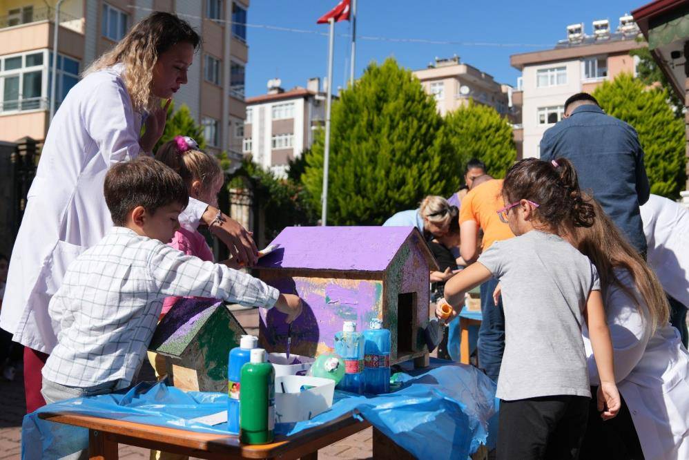 Veteriner İşleri Müdürlüğü'nde görevli veteriner hekimler ile veteriner sağlık teknikerleri, öğrencilerin sorularını yanıtladı. Ekip, hayvanlarla daha yakından ilgilenebilmeleri için okullara iki adet kedi kulübesi ve kuş evi hediye etti. Etkinlikte öğrenciler, ellerini çeşitli renklere boyayarak kulübe ve kuş evlerini el izleriyle renklendirdi. Keyifli anların yaşandığı boyama etkinliği renkli görüntülere sahne oldu.