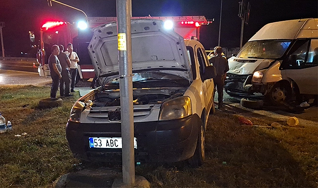 Hasan Hacıoğlu (36) yönetimindeki 53 ABC 222 plakalı hafif ticari araç, Samsun Sinop kara yolu Kolay Kavşağı'nda, Kurtuluş Aslan'ın (40) kullandığı 55 SH 347 plakalı kamyonetle çarptı. İhbar üzerine kaza yerine itfaiye, polis, jandarma ve 112 Acil Sağlık ekibi sevk edildi. Çarpmanın etkisiyle hafif ticari araçta sıkışan sürücü Hacıoğlu, çevredekilerin yardımıyla araçtan çıkarıldı. Yaralı sürücü, sağlık ekipleri tarafından Bafra Devlet Hastanesi'ne kaldırıldı. İtfaiye ekipleri yola sızan mazotu temizledi.