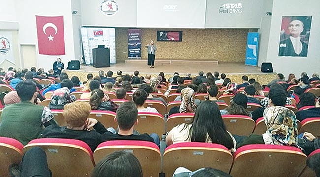 Üniversiteli öğrencilere daha hayatın başında olduklarını ve zamanı en verimli şekilde değerlendirmeleri gerektiğini söyleyen Defne Sarısoy, “Kendinizi geliştireceksiniz eğitim almak çok önemli ama diğer taraftan da kendinizi eğitmek çok önemli. Kendini iyi anlatabilen insanlar başarılı oluyor. Kendinizi iyi ifade etmek çok önemli. Kitap okumak önemli. Her geçen gün kitaplardan uzaklaşıyorsunuz, kitap okumaktan asla uzaklaşmayın. İnternet çok fazla bilgi sunuyor ama bilgiler parça parça olduğundan beynin bu bilgileri birleştirmesi çok zor oluyor. Bu parçaları birleştirmek için kitaba ihtiyacımız var, bu nedenle bol bol kitap okuyun. Çok sığ kelimeler kullanıyoruz birbirimizi anlamıyoruz. Herkes sizden bir şey öğrenmek istiyor. Sadece ben bir şey yapınca ne oluyor diye düşünmeyin herkes bir şey yapsa bunlar birikir ve toplumda gerçekten fark oluşturur. Sadece üniversitede okumak için okumayın. Ayakta kalmak için başka özelliklerinizi de ortaya çıkartın. Her şeyden önce kendinize güvenin ve hayatta başarılı olabileceğinize inanın” şeklinde konuştu. Kişisel Gelişim Uzmanı Gökhan Okçu ise konuşmasında öğrencilere farklı olmaları konusunda da tavsiyelerde bulundu. Okçu, “İnsan beyni nedensiz hareket etmez, mutlaka bir nedenin olsun ama güçlü olsun, yolunu kendin bulursun. Bir neden ver çevrendeki insanlara, güçlü olsun, senin için orada bulunsun. Çünkü insan beyni rutinden çıkanı takip eder” şeklinde konuştu. Ebubekir YILMAZ
