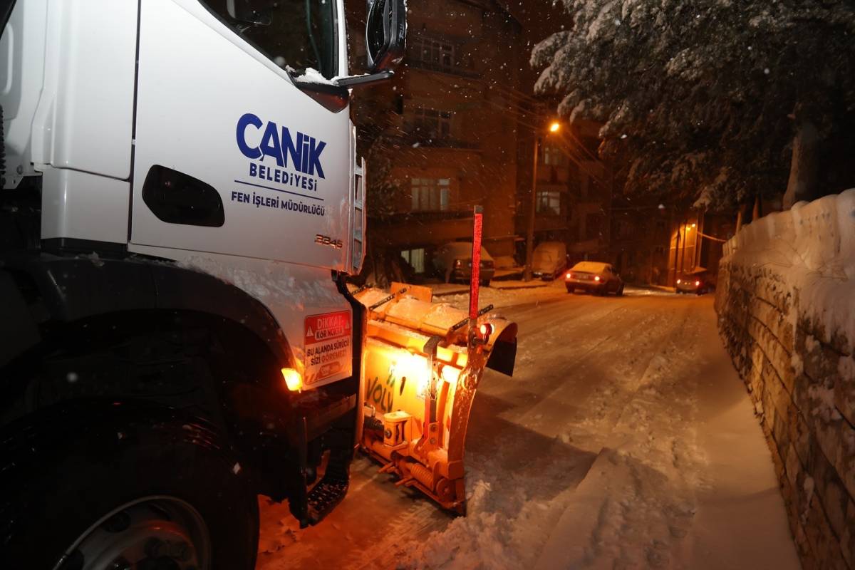 İlçede karla mücadele çalışmalarını 7/24 esasıyla sürdürdüklerini ve tüm ekiplerin sahada olduğunu belirten Başkan İbrahim Sandıkçı, "Canik'imizde tüm ekiplerimizle birlikte sahada 7/24 karla mücadelemizi sürdürüyoruz. Merkez ve kırsal mahallelerimizin tamamında koordineli bir şekilde çalışmalarımızı yürütüyoruz. Canik'te yollarımızı açık tutuyoruz. Kar küreme, yol tuzlama ve yol açma çalışmalarımızı gayretle sürdürüyoruz" şeklinde ifade etti.