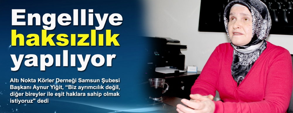 Görme engelli bireyler kendilerine haksızlık yapıldığını öne sürdüler. Altı Nokta Körler Derneği Samsun Şubesi Başkanı Aynur Yiğit, engelli memur kadrosunda bin 620 engelli bireyin alınacağını, bunların 426 tanesinin lise, 384 tanesinin ön lisans ve 810 tanesinin de lisans mezunu olacağını belirterek, yapılan tercihlerde engellilere haksızlık yapıldığını iddia etti.