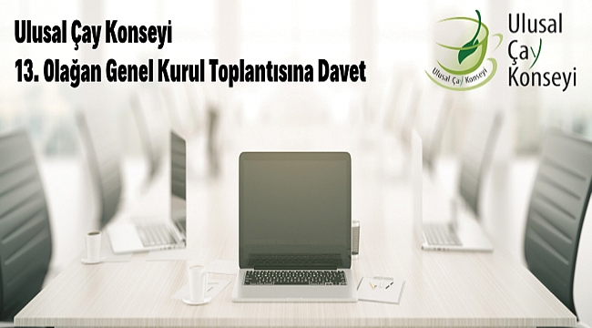 Ulusal Çay Konseyinin 13. Olağan Genel Kurul toplantısı aşağıdaki gündemle 10 Eylül 2021 Cuma günü saat:16.00’da İslampaşa Mah. Menderes Bulvarı No:522 Rize adresindeki Rize Ticaret Borsası konferans salonunda yapılacaktır.