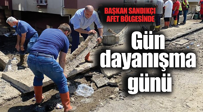 Afetin izlerini silebilmek için halkın yanında olduklarını dile getiren Başkan Sandıkçı, "Bölgeye yardım paketlerimizi öncesinden ulaştırmıştık. İhtiyaç oldukça yardımlarımız devam edecek zor günleri inşallah birlikte geride bırakacağız" şeklinde konuştu. Afet yönetiminde görev alan bütün ekiplerin yoğun yağış sonrası meydana gelen hasarları titizlikle onarmaya devam ettiğini söyleyen Başkan Sandıkçı, yaşanan afetin boyutunun çok şiddetli olduğunu, bununla birlikte devletimizin ilçedeki yaraların kısa sürede sarılması noktasında tüm imkânlarını seferber ettiğini belirtti.