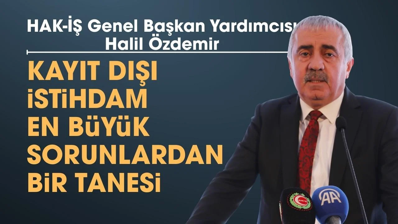 Hak İşçi Sendikaları Konfederasyonunun (HAK-İŞ) Genel Başkan Yardımcısı Halil Özdemir, kayıt dışı istihdamın ülkenin en önemli sorunlarından biri olduğunu belirterek, "Kayıt dışı ekonomide çalışanlar mağdur ediliyor, iş kazaları artıyor, emeğin ve insan onurunun kıymeti bilinmiyor" dedi.