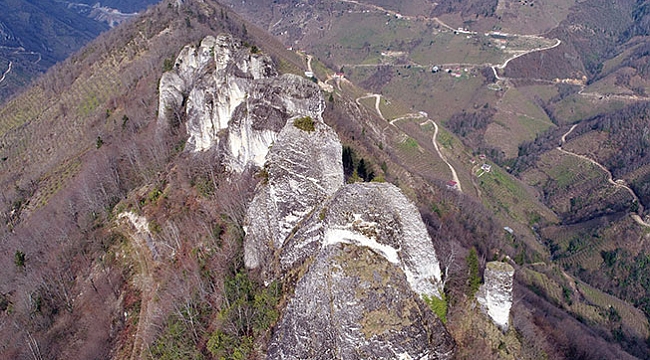 İlçenin doğal güzelliklerinin tanıtılması amacıyla yapılan görüntüleme çalışmasında efsanelere konu olan Gelinkaya Kayalıkları havadan görüntülendi.