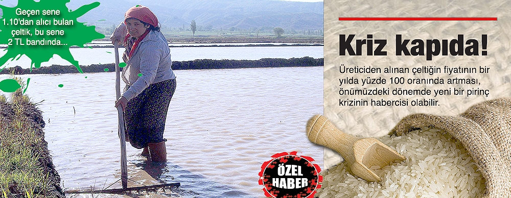 PİRİNÇ KUYRUKLARI OLMUŞTU Geçen sene 1.10 Kuruş'tan üreticiden alınan çeltiğin bu seneki fiyatının 2 TL olması, bir yandan üreticiyi sevindirirken diğer yandan da piyasada yeni bir pirinç krizini akıllara getirdi. 2008'de pirinçte fiyatlar artmış, vatandaşlar pirinç stoku yaparken, Toprak Mahsulleri Ofisi önünde günlerce pirinç kuyrukları oluşmuştu.