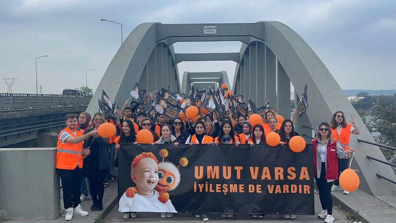 Katılımcılar, löseminin farkındalık rengi olan turuncu balonlar ve “Umut varsa iyileşme de vardır” yazılı pankartlarla yürüyerek lösemiyle mücadelede toplumsal bilincin önemine dikkat çekti.