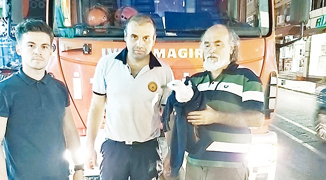 Samsun'un İlkadım ilçesinde, iki duvar arasında sıkışan ve açlıktan ölmek üzere olan martıyı itfaiye ekipleri kurtardı