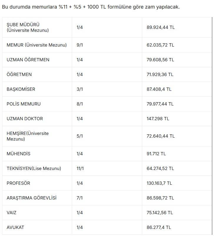 Bu durumda memurlara %11 + %5 + 1000 TL formülüne göre zam yapılacak.