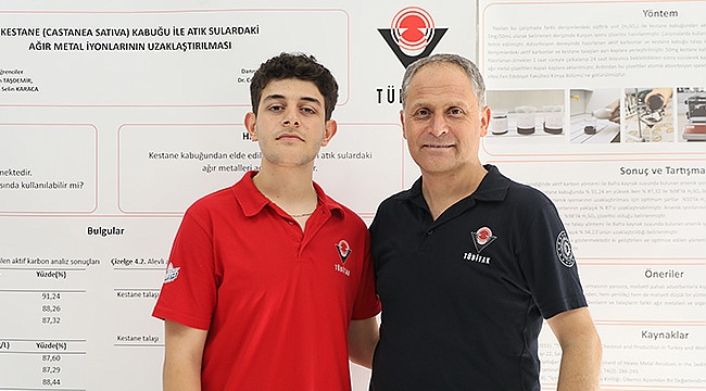 Öğrencilerin sudaki ağır metallerin nasıl uzaklaştırılacağı üzerine çalışma yaptığını anlatan Keser, şunları kaydetti: "Kestane üretimi açısından büyük kapasiteye sahip bölgemizde kestane kabuğunu değerlendirmek istedik. Kestane kabuğunu hem talaş hem de aktif karbon haline getirerek, hem sudaki arsenik ağır metalini hem de kendi hazırladığımız kurşun iyonları uzaklaştırmayı hedefledik. Yaptığımız deneyler sonucunda yaklaşık yüzde 90 ağır metalleri kirli sudan uzaklaştırdık. Bu filtre belki bir fabrikanın ağır metal içeren suyunda denenebilir. Neticede amacımız, kestane kabuğunun ağır metalleri giderip gidermediğini belirlemekti."