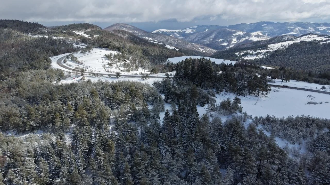Samsun'un Alaçam ilçesinde beyaz örtüyle kaplanan Kızlan Yaylası, dronla görüntülendi.