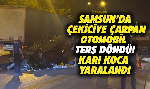 Samsun'un Tekkeköy ilçesinde 20.30 sıralarında Şabanoğlu Mahallesi Atatürk Bulvarı üzerinde otomobil çekiciye çarptı. Kemal D.’nin kullandığı 55 AJB 516 plakalı otomobil, Yusuf Ç. yönetimindeki 16 DE 301 plakalı çekicinin 34 TK 4735 plakalı dorsesine arkadan çarpıp, ters döndü. Kazada, sürücü Kemal D. ile yanındaki eşi Sevgi D., yaralandı. İhbar üzerine kaza yerine polis ve sağlık ekipleri sevk edildi. Yaralılar, sağlık ekiplerinin ilk müdahalesinin ardından Gazi Devlet Hastanesi’ne götürülüp, tedaviye alındı. Kazayla ilgili inceleme başlatıldı.