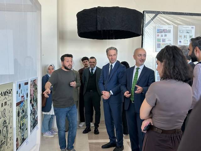 Samsun Üniversitesi İletişim Tasarımı ve Yönetimi Bölümü Araştırma Görevlisi M. Burkay Şimşek, bölümün öğrencileri tarafından ortaya çıkarılan eserleri, ziyaretçilere tanıttı. Eserler, ziyaretçiler tarafından yoğun bir ilgiyle karşılandı.