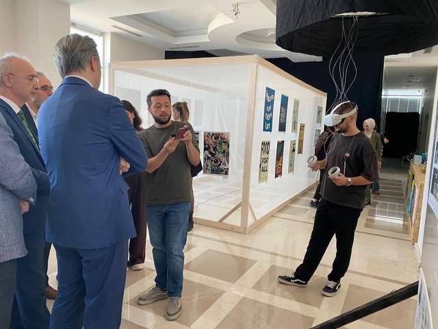 Ziyaretçiler, VR gözlüğe yüklenen görüntüler sayesinde sergiyi sanal gerçeklik deneyimiyle gezme fırsatı buldu.