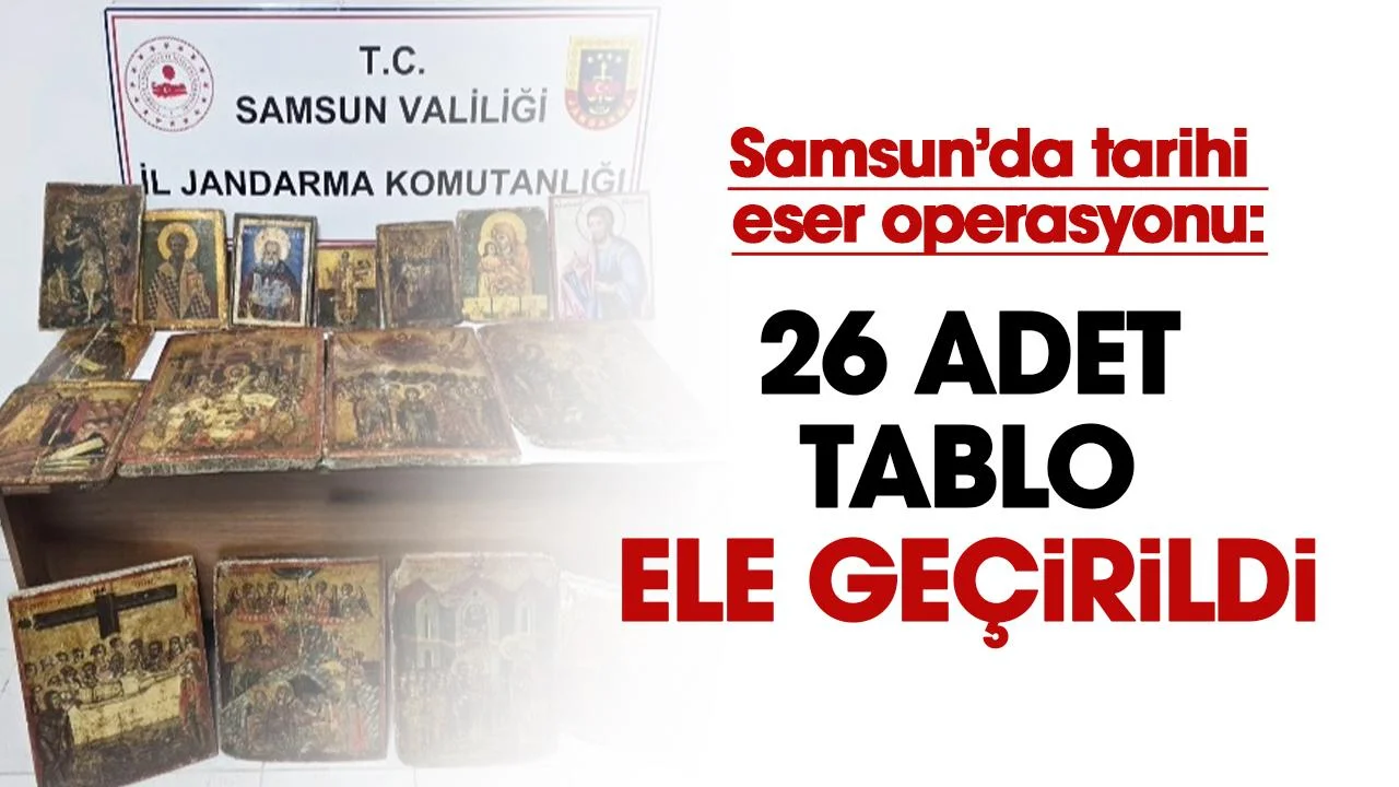 Samsun'da jandarma ekiplerince düzenlenen operasyonda 18. yüzyıla ait olduğu değerlendirilen 26 adet tarihi eser niteliğinde tablo ele geçirildi, 1 şüpheli gözaltına alındı.