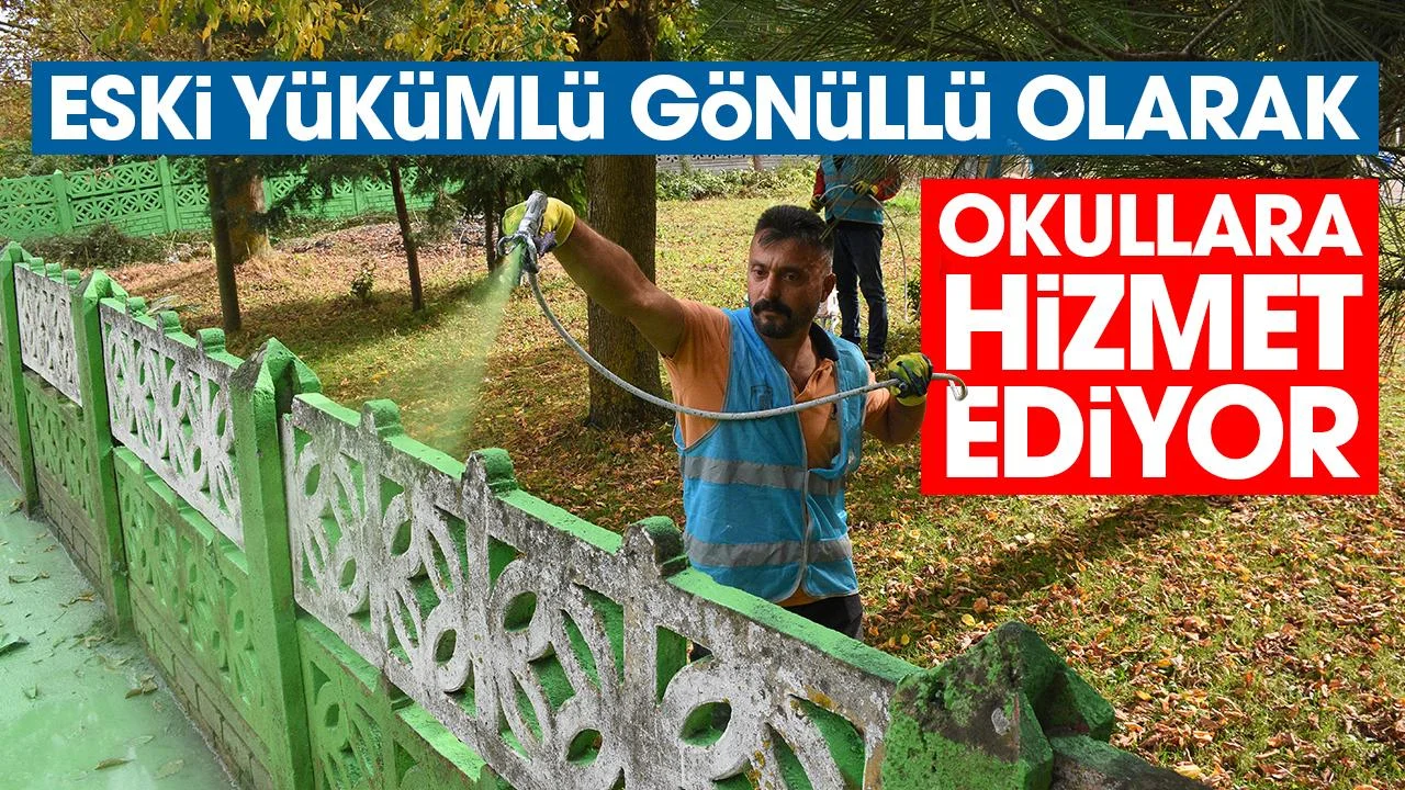 Samsun haber - Samsun'un Çarşamba ilçesinde yaşayan eski yükümlü, denetim süresi bitmesine rağmen gönüllü olaraka boyadığı okulların çevre temizliğini yapıyor.