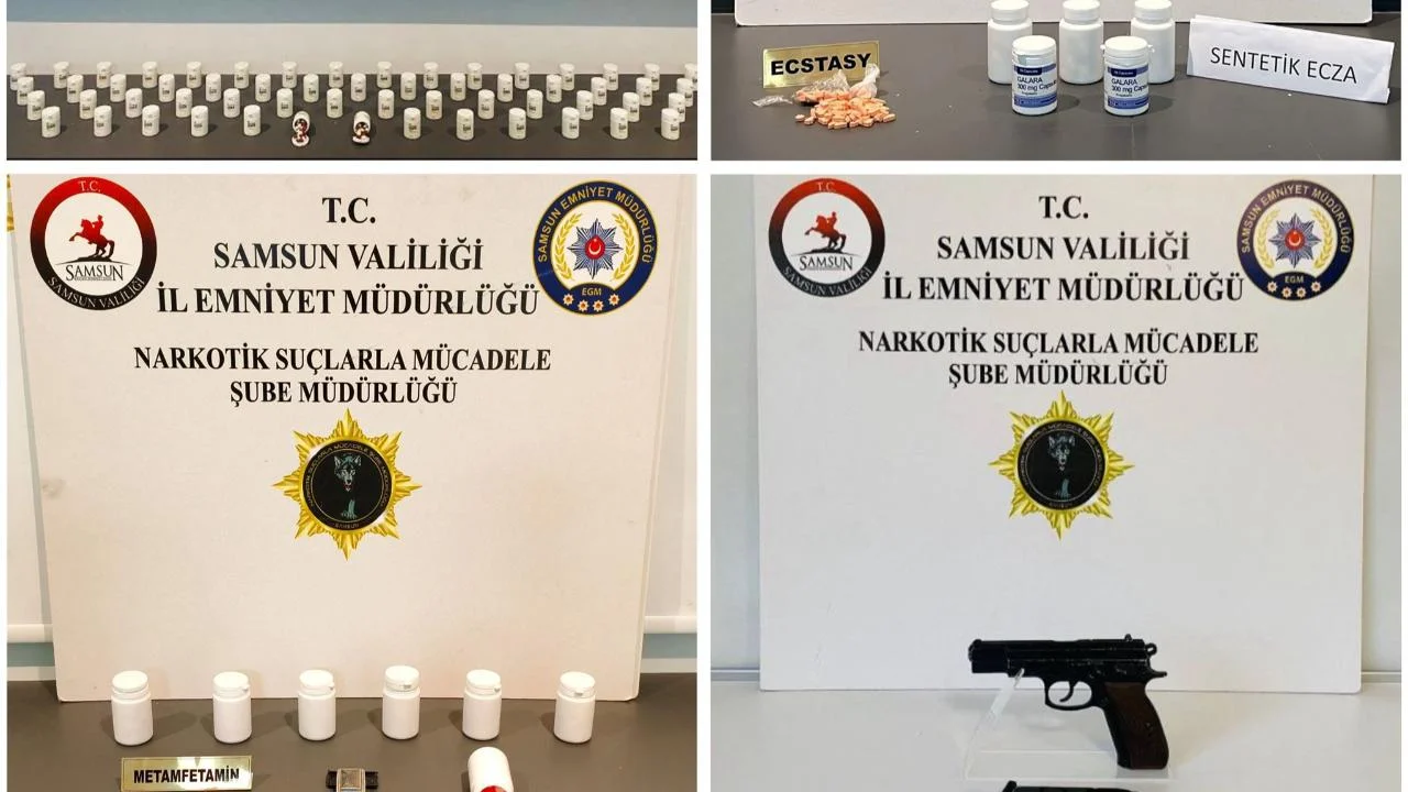 Operasyon kapsamında belirlenen adreslerde ve şüphelilerin üst, araç ve ikametlerinde yapılan aramalarda; 3 bin 614 adet sentetik ecza, 96 adet ecstasy hap, 32,45 gram sentetik kannabinoid, 6 parça halinde toplam 2,15 gram metamfetamin, 1 adet ruhsatsız tabanca, 20 adet tabanca fişeği, 1 adet hassas terazi ile 1 adet uyuşturucu madde kullanım aparatı ele geçirildi.