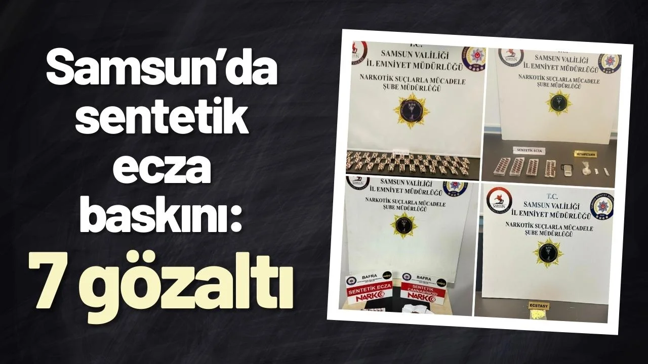 İlkadım, Bafra ve Yakakent ilçelerinde belirlenen hedeflere yönelik düzenlenen operasyonlarda 7 şüpheli şahıs yakalandı. Şüphelilerin üzerinde, araçlarında ve ikametlerinde yapılan aramalarda; 3 bin 444 adet sentetik ecza, 17,23 gram metamfetamin, 6,37 gram sentetik kannabinoid, 17 adet ecstasy hap, 1 adet esrarlı sigara, 1 adet hassas terazi ve 5 adet uyuşturucu madde kullanım aparatı ele geçirildi.