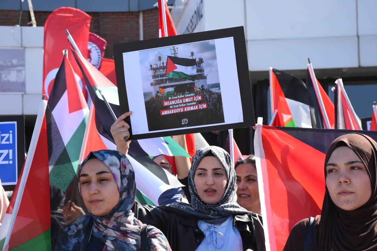 Samsun haber-Gazze'ye insani yardım ulaştırmak için yola çıkan Küresel Sumud Filosu'na İsrail'in düzenlediği saldırıları protesto eden öğrenciler, cuma namazı çıkışı OMÜ Kampüs Camisi önünde toplandı. Filistin bayrakları ile pankart açan öğrenciler, OMÜ Atatürk Kongre ve Kültür Merkezi'ne kadar İsrail aleyhine slogan atarak yürüdü. Yürüyüşün ardından yapılan basın açıklamasını okuyan Umut Albayrak, bugün insanlığın gözü önünde bir utanç daha yaşandığını söyledi.
