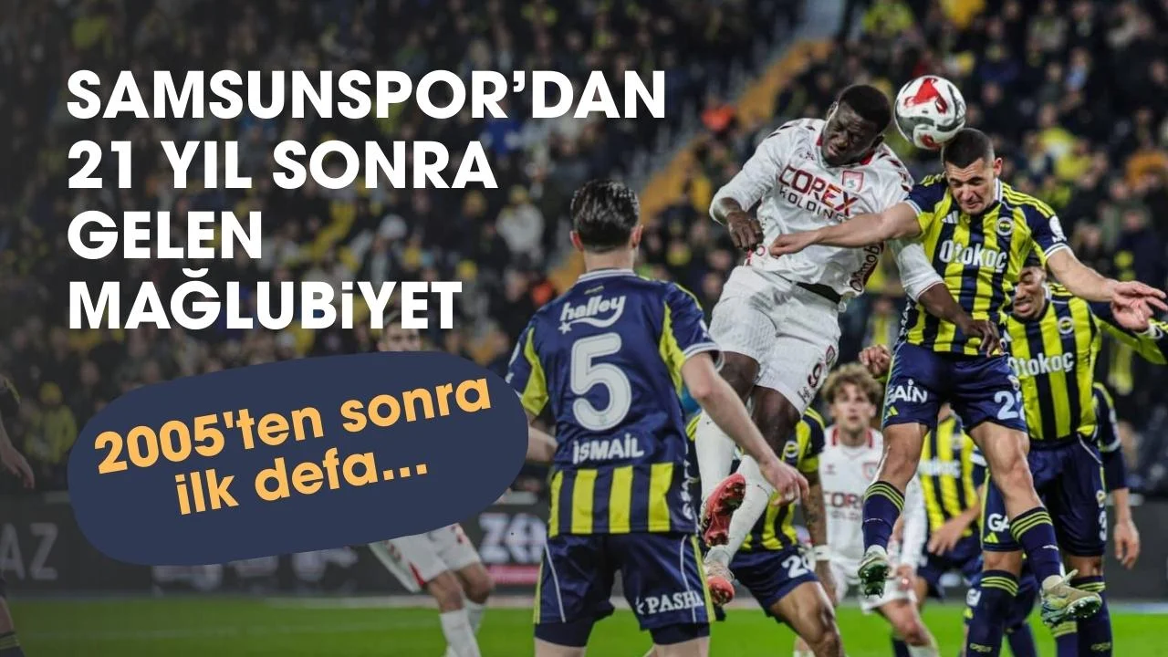 Samsunspor, Süper Lig'de karşılaştığı Fenerbahçe'ye deplasmanda 21 yıl sonra kaybetti. Kırmızı beyazlılar Fenerbahçe'ye karşı deplasmanda en son mağlubiyetini 2005 yılında almıştı