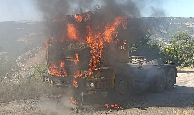 Amasya’da önceki gün akşam saatlerinde bir tır, Yağcıabdal köyüne giderken henüz bilinmeyen bir nedenle yanmaya başladı. Yangının büyümesi ile tır kısa süre içerisinde alev topuna döndü. Yangını gören çevredeki vatandaşlar ve sürücü durumu itfaiyeye bildirdi. Olay yerine gelen Amasya Belediyesi itfaiye ekiplerinin müdahalesi ile söndürülen yangında tır kullanılamaz hale geldi. Dorseden kurtarılan çekicinin yandığı anlar ise cep telefonu kamerasına yansıdı.