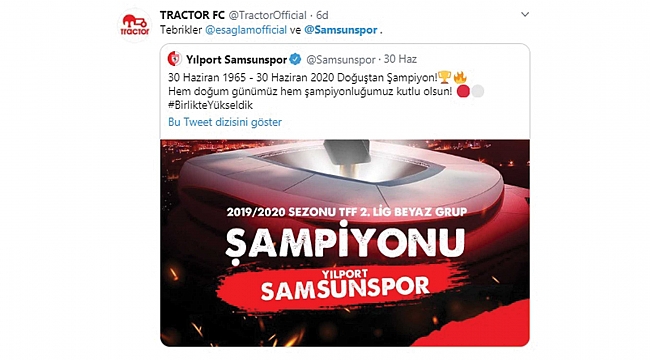 Yılport Samsunspor Teknik Direktörü Ertuğrul Sağlam’ın bir dönem görev aldığı İran 1. Lig takımı Tractor FC, kırmızı-beyazlı ekibin şampiyonluğu sosyal medya hesaplarından kutladı. İran ekibi, eski teknik direktörü Ertuğrul Sağlam’ın başarısını unutmadı.
