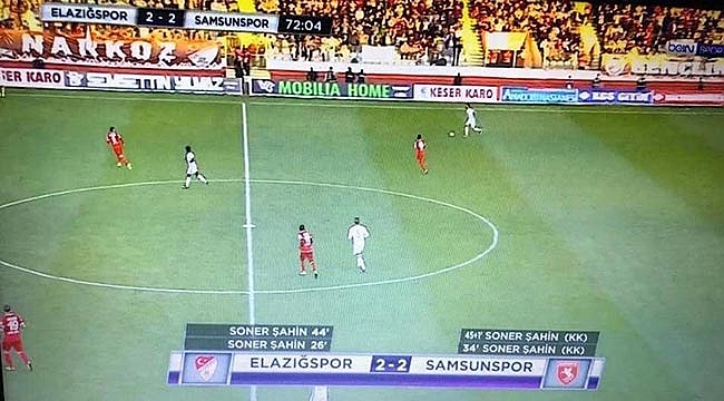 TFF 1. Ligde oynanan Elazığspor - Samsunspor maçında 4 golü de aynı kişinin attığı belirtilen görüntü, yayıncı kuruluşun hatası çıktı