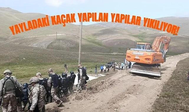 Gümüşhane’nin Taşköprü Yaylası’nın kaçak yapıları yıkılmaya başlandı. Kaçak yapı sahipleri, iş makinelerinin geçişine engel olmaya çalıştı.